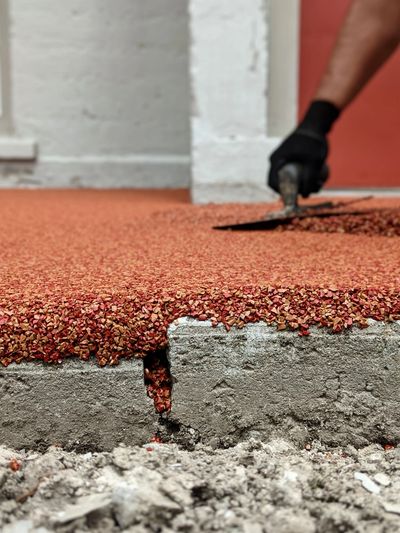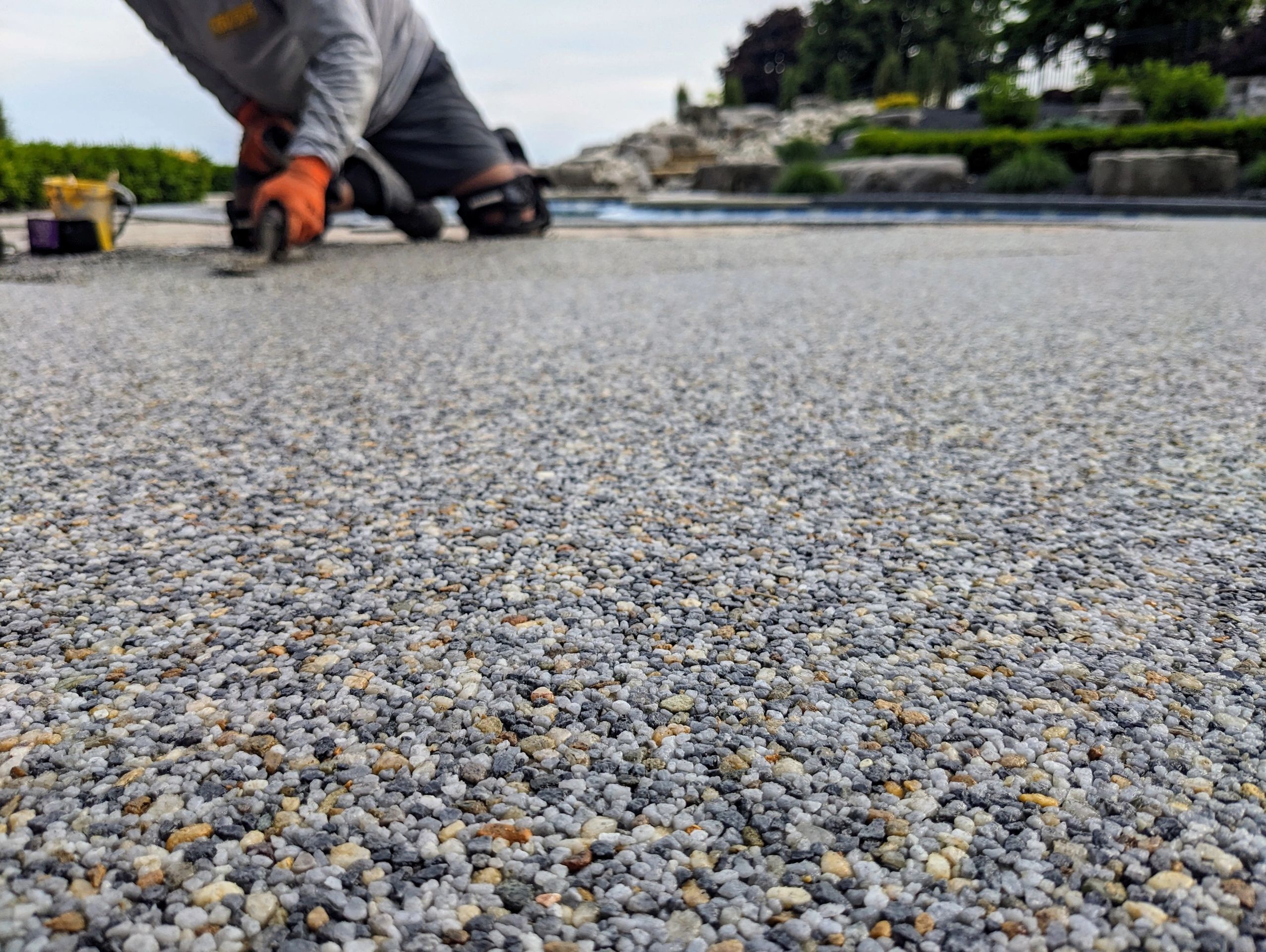 We resurface concrete with Vuba Stone's resin-stone Surfacing system and Rubber Stone's EPDM rubber. No matter which product you choose, we use a powerful polyurethane resin, mix it on-site, and put the coating in place. Every job is a custom application, professionally and proudly installed by our team of trained trowelers.